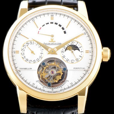 • 홍콩명품 [예거르쿨트르] 남성용 마스터 그랑 트래디션 5042420 퀀템 퍼페추얼 18K 옐로우골드 화이트 다이얼 아시안 투어빌론 탑재 무브먼트 JAG0412