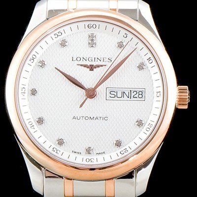 Longines Master Collection Day Date 18k Rose Gold Two-tone color White Textured Dial Bracelet Automatic Movement