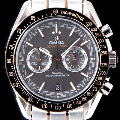 Omega Speedmaster 18k Rose Gold Racing Co-Axial Master Chronometer Tachymeter Chronograph Grey Dial Bracelet Japan Quartz Movement