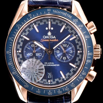 • 홍콩명품 [오메가] 남성용 스피드마스터 329.53.44.51.03.001 18K 로즈골드 레이싱 코-액시얼 마스터 크로노미터 타키미터 크로노그래프 블루 다이얼 일본 수입산 쿼츠 무브먼트 OMG05041
