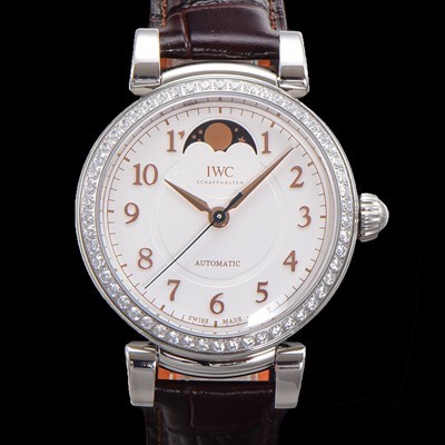 • 홍콩명품 [아이더블유씨]여성용 다빈치 IW459307 오토매틱 문페이즈 36mm 18K 로조골드 다이아몬드베젤가죽줄 화이트다이얼 iwc76405