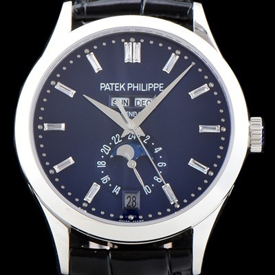 홍콩명품 [파텍필립] 남성용 신형!!컴플리케이션 5396R-014 에뉴얼 캘린더 데이-데이트 문페이즈 바게트 컷 다이아몬드 인덱스 네이비 다이얼 Cal.324 S C 오토매틱 무브먼트 PAT0101 > 파텍필립 홍콩명품