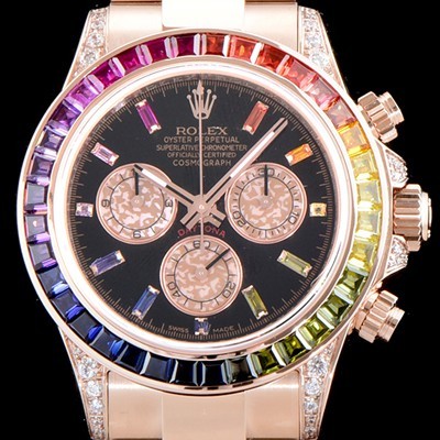 홍콩명품 [로렉스] 남성용 2018년 바젤월드 코스모그래프 데이토나 116595 RBOW "레인보우" 무지개 컬러 바게크 컷 사파이어 36개 세팅 베젤 블랙 다이얼 오이스터 브레이슬릿 7750B-2 오토매틱 무브먼트 ROL0502 > 로렉스 홍콩명품