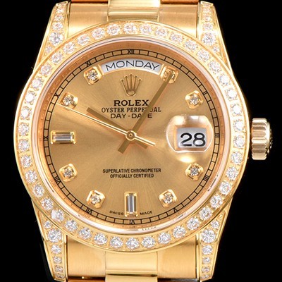 홍콩명품 [로렉스] 남성용 오이스터 퍼페츄얼 118348 데이데이트 최상급쥬얼 다이아몬드 세팅 18K 옐로우 골드 브레이슬릿 오토매틱 무브먼트 ROL0300 > 로렉스 홍콩명품