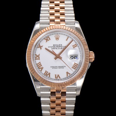 Rolex Men's Dayjust 18K Rose Gold Roman Index 36mm Automatic Cal.3235 Movement White Dial