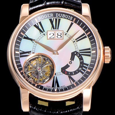 • 홍콩명품 [로저드빌]남성용  오마쥬 수동기계식 투어빌론(뜨루삐옹) 45미리 18K 로즈골드 화이트다이얼 ROG65469