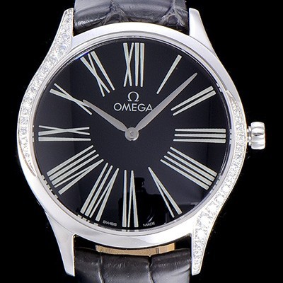 • 홍콩명품 [오메가]여성용 드빌 스틸 트레저 다이아몬드 36미리 쿼츠 블랙다이얼 OMG45332