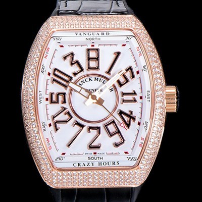 • 홍콩명품 [프랭크뮬러] 남성용 뱅가드 오토매틱 CZ02타입 44미리 18K로즈골드/보석/큐빅 셋팅 가죽줄/스트랩 화이트다이얼 FRA73777