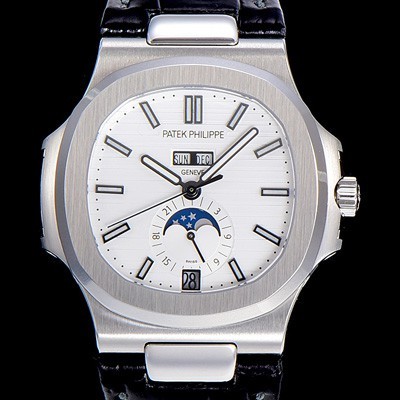 홍콩명품 [파텍필립] 남성용 노틸러스 5726/1A-014 오토매틱 Cal.324 타입 40미리 문페이즈 가죽줄/밴드 화이트다이얼 PAT75447 > 파텍필립 홍콩명품