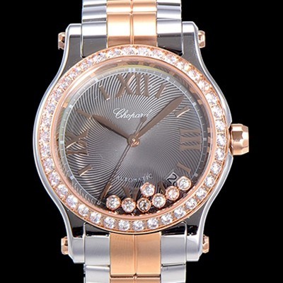 • 홍콩명품 [쇼파드] 여성용 해피 스포츠 36미리 오토매틱 ETA2892-2 18K 로즈골드 최상급 쥬얼셋팅 메탈시계 그레이다이얼 CHO73655