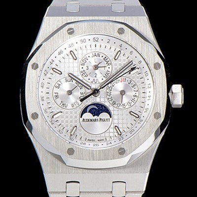홍콩명품 [오데마피게] 남성용 로얄오크 페퍼츄얼 41미리 오토매틱 5134타입 매탈줄 문페이즈 화이트다이얼 AUD74477 요약정보 및 구매