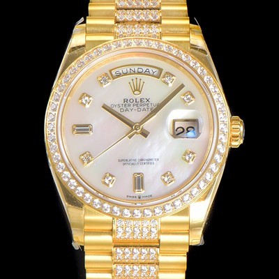 Rolex Day-Date Automatic Cal.3235 TYPE 36mm Mens 18K All Yellow Gold Diamond White Dial