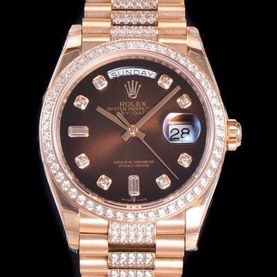 Rolex Day-Date Automatic Cal.3235 TYPE 36mm Mens 18K All Rose Gold Diamond Brown Dial
