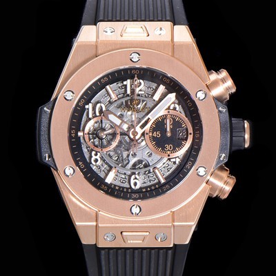 • 홍콩명품 [휴블렛] 남성용 빅뱅 유니코 킹골드 크로노그래프 421.OX.5180.RX 로즈골드 HUB1280 오토매틱 므브먼트 44mm 러버밴드 스켈레톤 다이얼 hub38959