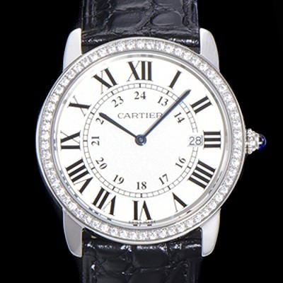 • 홍콩명품 [까르띠에] 남여공용 롱드 더 솔로 WR000551  쿼츠 므브먼트 36미리 큐빅베젤 악어가죽줄 화이트다이얼 CAR11556
