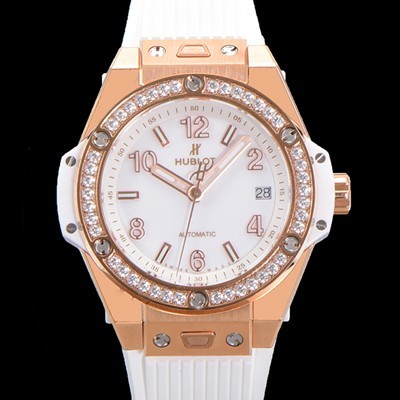 홍콩명품 [휴블렛] 남여공용 빅뱅 오토매틱 HUB1710타입 39mm 다이아/보석 세팅 로즈골드 우레탄밴드 화이트다이얼 hub3521 > 위블로 홍콩명품