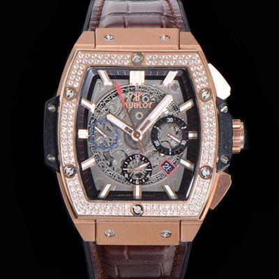 홍콩명품 [휴블렛] 남성용 스피릿 빅뱅 마스터피스 크로노그래프 Hub4700타입 45mm 18K로즈골드/다이아몬드 셋팅 가죽줄 스켈래톤다이얼 hub9351 > 위블로 홍콩명품