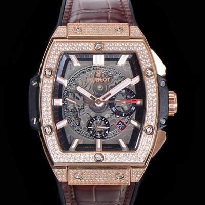 홍콩명품 [휴블렛] 남성용 스피릿 빅뱅 마스터피스 크로노그래프 Hub4700타입 45mm 18K로즈골드/다이아몬드 셋팅 가죽줄 스켈래톤다이얼 hub2191 > 위블로 홍콩명품