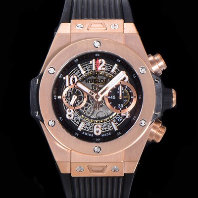 • 홍콩명품 [휴블렛] 남성용 빅뱅 유니코 45mm 오토매틱 HUB1242 타입 18K 로즈골드 러버줄 스켈래톤 다이얼 hub9293