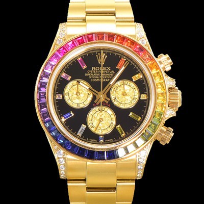 Rolex Cosmograph Daytona Oyster 40mm Mens Automatic Choronograph Eta 7750-2 Type Diamond Setting 18K Yellow Gold Black Dial