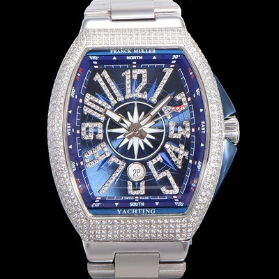 • 홍콩명품 [프랭크뮬러] 남성용 1:1수제공정 풀 다이아셋팅 뱅가드 오토매틱 ETA2824 타입 45mm 메탈줄 블루다이얼 fra4686