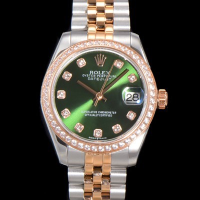 Rolex Date-Just Oyster Perpetual 31mm Ladies Automatic Diamond Bezel 18K Rose Gold TWO-TONE Combi Blue Dial