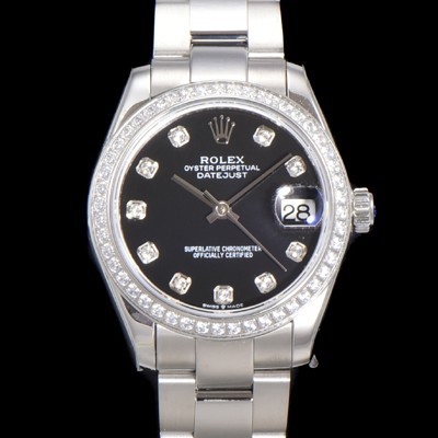 Rolex Date-Just Oyster Perpetual 31mm Ladies Automatic Diamond Bezel Balck Dial