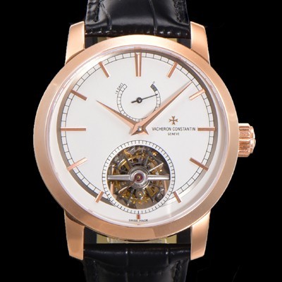 • 홍콩명품 [바쉐런콘스탄틴] 남성용 트레디셔널 투어빌론 자동형  18K 로즈골드 42mm 가죽줄 화이트다이얼 vac64750