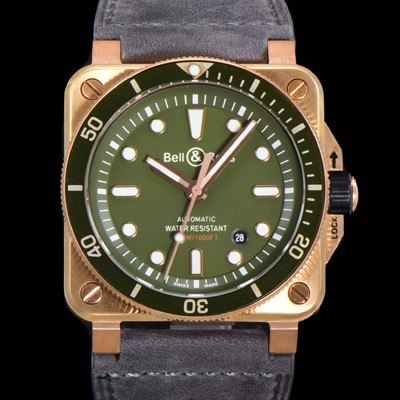 • 홍콩명품 [벨앤로즈] 남성용 BR03-92 다이버 브론즈 소재 세라믹 베젤 오토매틱 9015 타입 42mm 가죽줄 그린 다이얼 bel4095
