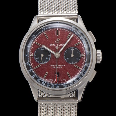 Breitling Men's Premier Chronograph 7750 Type Automatic 42mm Mesh Band Red Dial