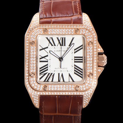 Cartier Santos 100 XL Automatic ETA2824-2 Type 18k Rose Gold Men's 51mm Leather Strap White Dial