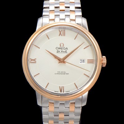 Omega Men's Deville Prestige Automatic Cal.8800 Type 39.5mm 18K Rose Gold Metal Strap White Dial