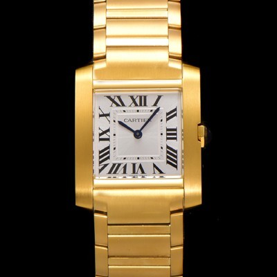 Cartier Men's Tank "Française Watch!!" Medium Model Yellow Gold Quartz Movement White Dial