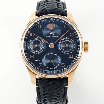 IWC Men's Portuguese Perpetual Calendar Single Moon 44mm 18k rose gold Automatic Movement Blue Dial