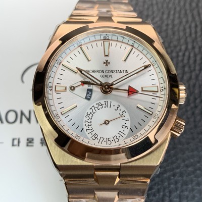 • 홍콩명품 [바쉐런 콘스탄틴] 남성용 오버시즈 듀얼타임 18K 로즈골드 오토매틱 칼리버 5200 타입 41mm 메탈줄 실버 다이얼 vac1174