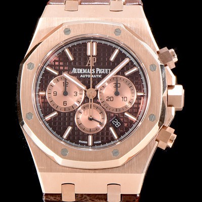 홍콩명품 [오데마피게] 남성용 "New 41mm사이즈 가죽밴드 UP!!"로얄오크 26331OR.OO.D821CR.01 크로노그래프 고급스러운 18K 로즈골드 케이스 브라운 와플 다이얼 신형 ETA 7750B-2 오토매틱 무브먼트 AUD0154 요약정보 및 구매