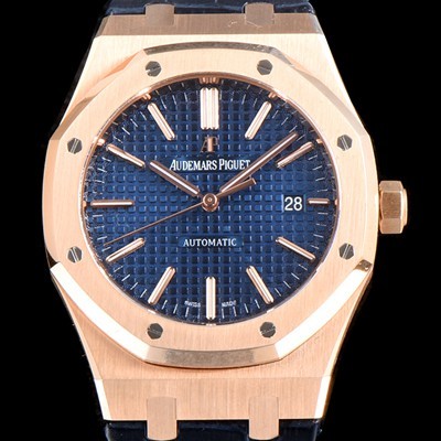 Audemars Piguet Royal Oak 18k Rose Gold Blue Waffle Dial Automatic Movement