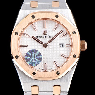 • 홍콩명품 [오데마피게] 남성용 로얄오크 18K 로즈골드 투톤콤비 화이트 와플 다이얼 브레이슬릿 쿼츠 무브먼트 AUD0251