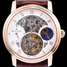 홍콩명품 [블랑팡] 남성용 VIP타입 리얼 뚜르비용 18k 로즈골드 화이트 다이얼 투어빌론 무브먼트 BLA4215