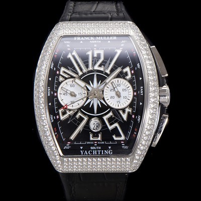 Franck Muller Men's Vanguard Diamond Setting Automatic Chronograph Type 7750 44mm Leather Strap Black Dial