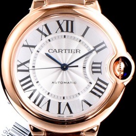 Cartier Ballon Bleu De Cartier 18k Rose Gold White Silver Sun Dust Dial Bracelet Automatic Movement