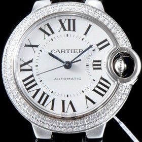 Cartier Ballon Bleu De Cartier Diamond Bezel White Silver Sun Dust Dial Automatic Movement