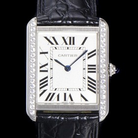 홍콩명품 [까르띠에] 남성용 탱크 WJTA0015 로마 인덱스 34.8mm 화이트 다이얼 커플용 악어가죽 쿼츠 무브먼트 CAR0501