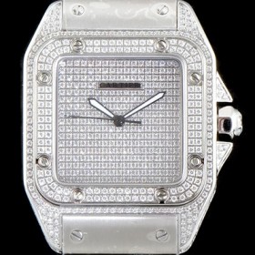 홍콩명품 [까르띠에] 남성용 산토스 100 베스트 에디션 W20073X8 미듐 모델 화이트 골드 풀다이아몬드 셋팅 오토매틱 무브먼트 CAR4010