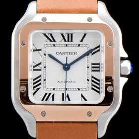 홍콩명품 [까르띠에] 남성용 산토스 드 까르띠 W2SA0007 "18K 로즈골드 베젤" 미듐 모델 정품 동일 사이즈 실버 마감 오팔린 다이얼 오토매틱 무브먼트 CAR4000