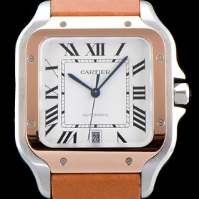 홍콩명품 [까르띠에] 남성용 산토스 드 까르띠 W2SA0006 "18K 로즈골드 베젤" 라지 모델-데이트 정품 동일 사이즈 실버 마감 오팔린 다이얼 오토매틱 무브먼트 CAR4004