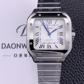 홍콩명품 [까르띠에] 남성용 신형 산토스 드 까르띠 모델!! WSSA0029 "스마트링크" 35.1mm 실버 마감 오팔린 다이얼 미요타 9015오토매틱 무브먼트 CAR4120