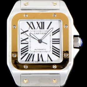 • 홍콩명품 [까르띠에] 남성용 산토스 시리즈 100 W200728G 베스트 에디션 18k 옐로골드 투톤콤비 화이트 다이얼 브레이슬릿 오토매틱 무브먼트 CAR0009