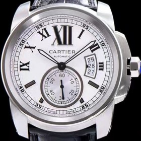 홍콩명품 [까르띠에] 남성용 칼리브드 까르띠에 화이트 다이얼 블랙 레더 스트랩 오토매틱 무브먼트 CAR0018