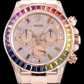 홍콩명품 [로렉스] 남성용 신형 데이토나!! 코스모그래프 "레인보우" 무지개 컬러 바게크 컷 사파이어 36개 세팅 베젤 다이아몬드-핑크자게 다이얼 오이스터 브레이슬릿 7750B-2 오토매틱 무브먼트 ROL0510